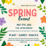 21 Apr Spring Event–May 17th Posted at 13:35h in General News, Music, RCT, Sunday School by Lauren Mcbride Growseeds Join us after worship for some fellowship, fun, food, and a time to plant seedlings and flowers around the church. Lauren Mcbride lmcbride27@hotmail.com